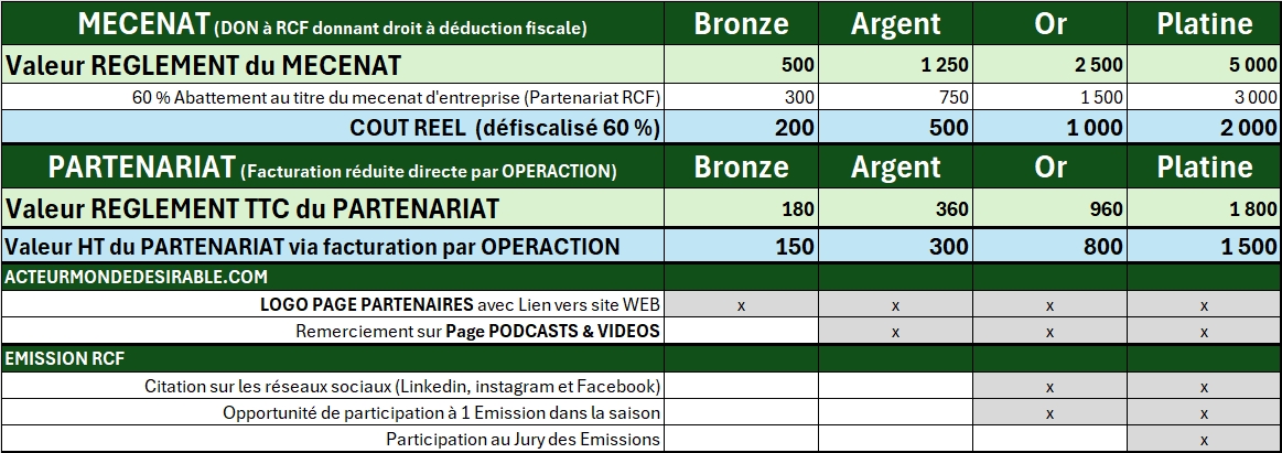 Optez pour l’option de Partenariat ou Mecenat adaptée à vos opportunités de financement et implication.